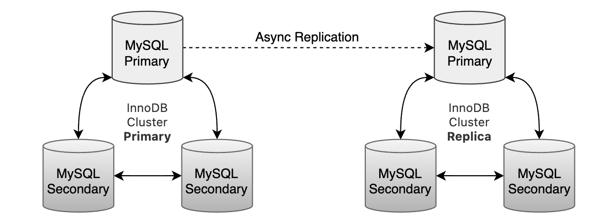 - 여러 MySQL InnoDB Cluster를 비동기 복제로 연결